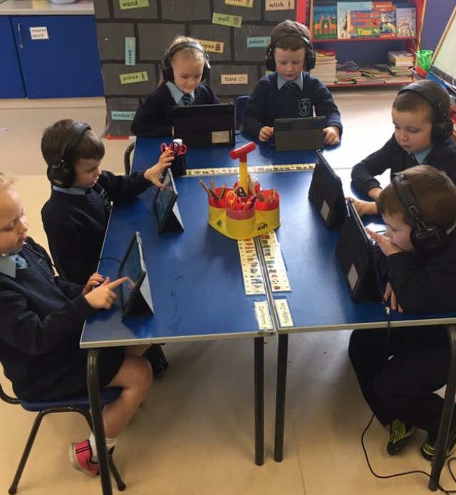 Some Year 1 children enjoying using the new iPads for Lexia Core5 Reading Programme.